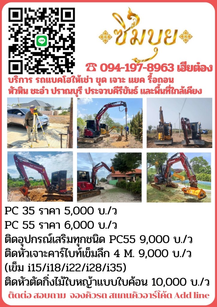 🛜บริการให้เช่ารถแบคโฮ ในเมืองหัวหินชะอำปราณบุรี