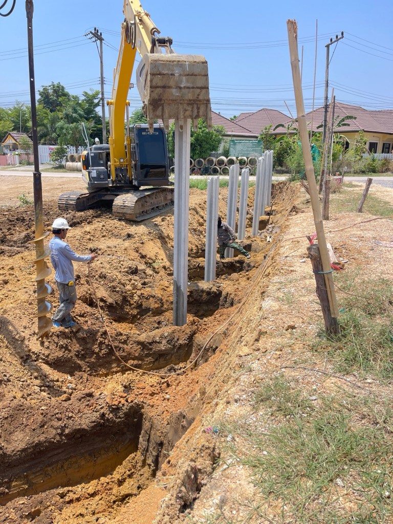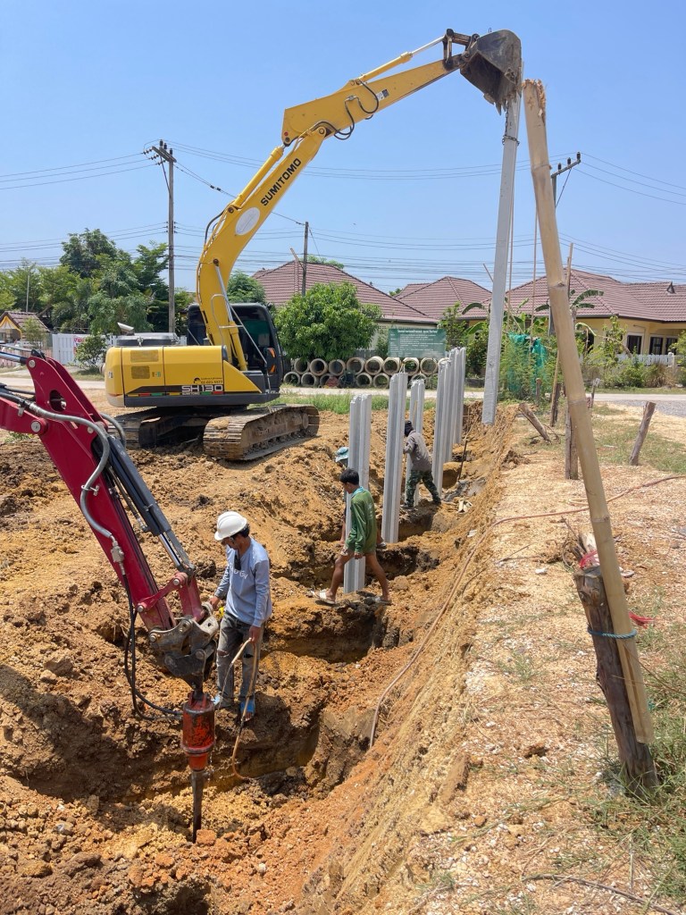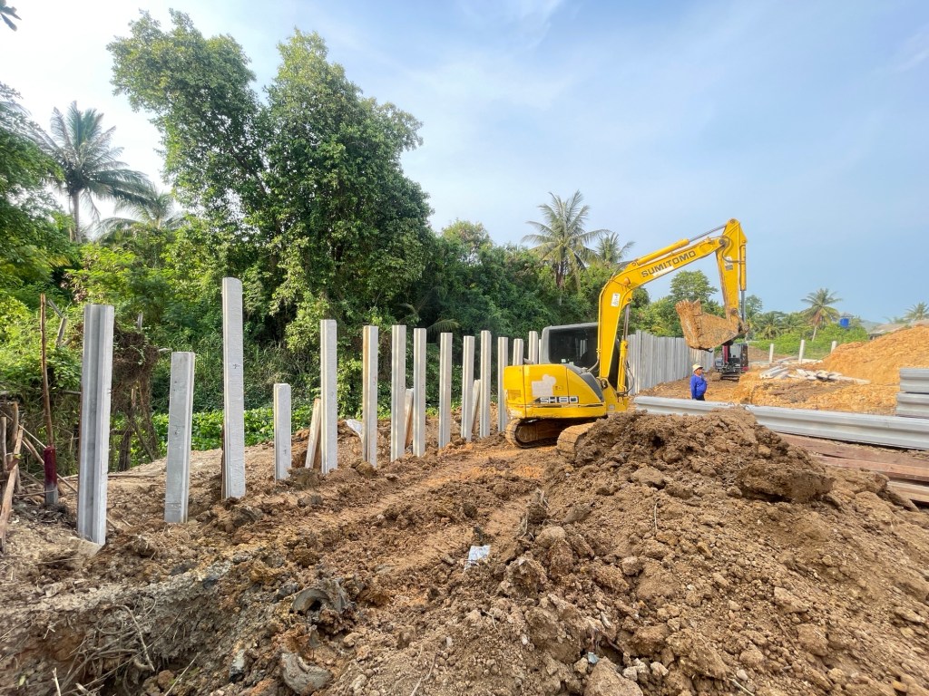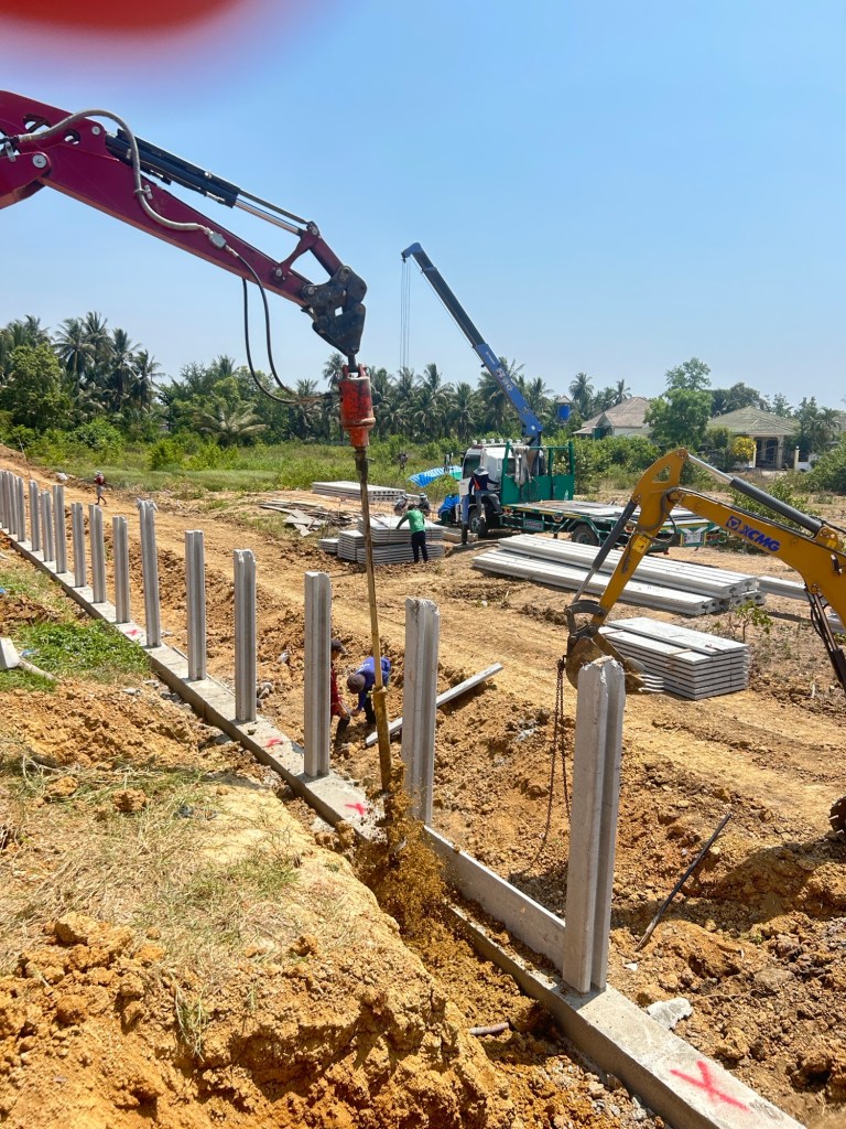 ⛑️(กำลังก่อสร้าง) แมคโครเจาะลงเข็ม i22 ฐานราก ชุดล่างกำแพงกันดิน ชุดบน i15 รั้วคอนกรีตสำเร็จ เริ่มดำเนินงาน วันที่ 20 เมษายน 2567 ระยะรั้ว 285 เมตร งานรั้วกำแพง บ้านคุณตุ๊ก อ.ปราณบุรี จ.ประจวบคีรีขันธ์