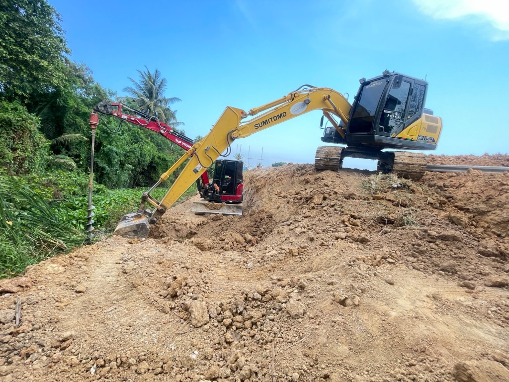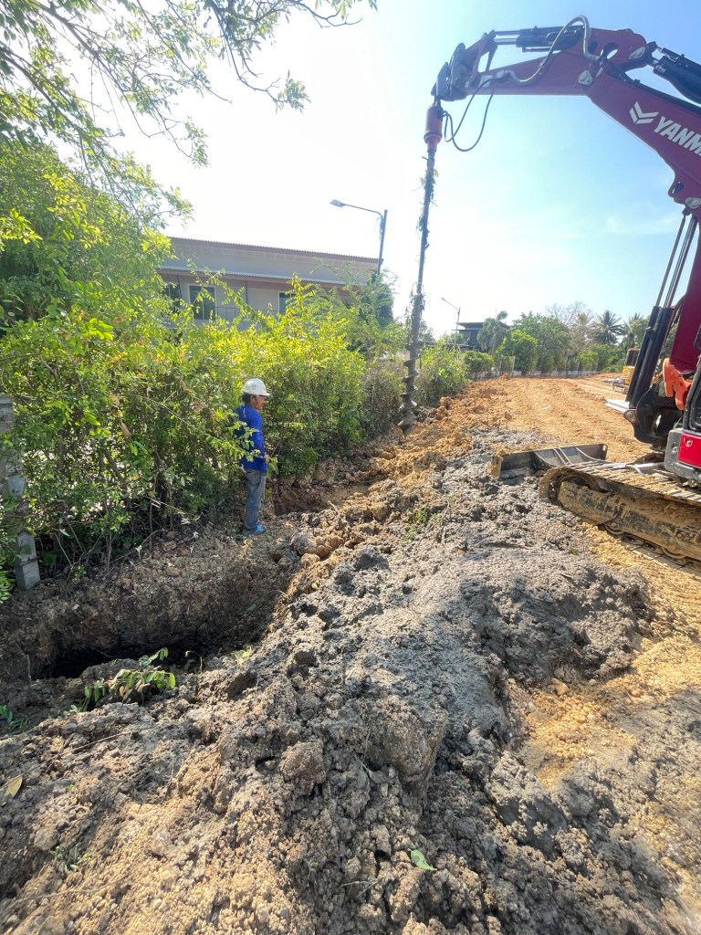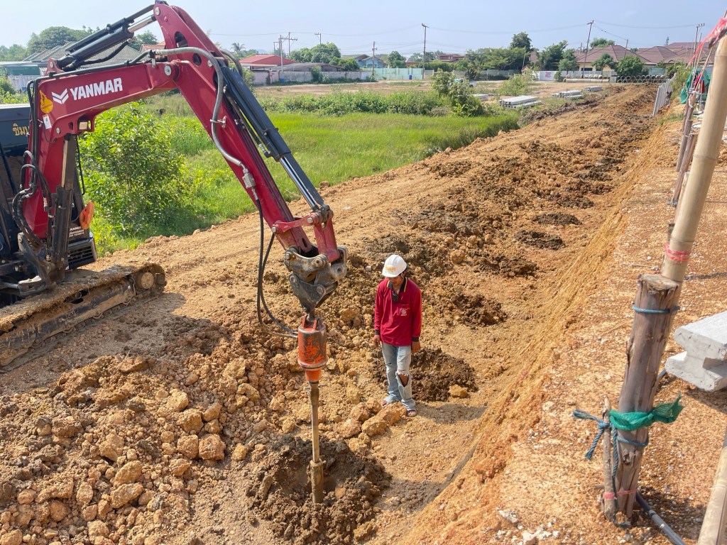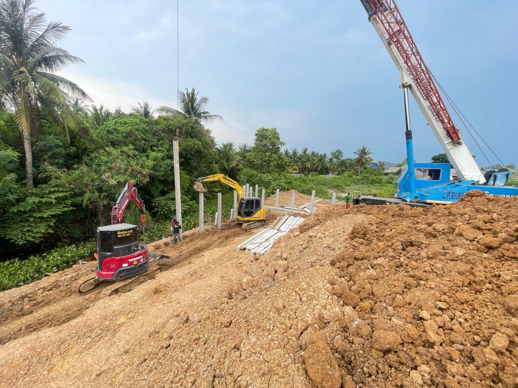 ⛑️(กำลังก่อสร้าง) แมคโครเจาะลงเข็ม i22 ฐานราก ชุดล่างกำแพงกันดิน ชุดบน i15 รั้วคอนกรีตสำเร็จ เริ่มดำเนินงาน วันที่ 20 เมษายน 2567 ระยะรั้ว 285 เมตร งานรั้วกำแพง บ้านคุณตุ๊ก อ.ปราณบุรี จ.ประจวบคีรีขันธ์